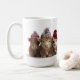 Un trio de vaches de petite montagne mignonnes portant des casquettes tricotés. Ils se préparent pour le froid et vous pouvez aussi avec cette tasse amusante! Profitez de la saison des fêtes avec votre boisson chaude préférée dans cette tasse.