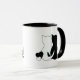 Mug Valentine personnalisée, Coeur Chat Kittens, Noir et Blanc. Personnalisez cette jolie tasse mignonne avec votre propre texte pour créer un cadeau unique de la Saint Valentin ! C'est un grand cadeau pour les anniversaires, anniversaires, fiançailles, Save The Dates aussi. Changez juste le texte ! 2 chatons mignons assis ensemble entre de minuscules coeurs. Design moderne, art vectoriel original en gris et rose.