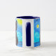 Café Mug avec un chat noir dans la peinture de Van Gogh Starry Night! Ce chaton aux yeux bleus regarde agréablement d'un arrière - plan de tourbillons bleus et d'une lune jaune vif. Un cadeau fantastique pour les amoureux de les chats et les collectionneurs d'art hollandais !