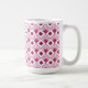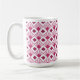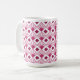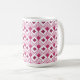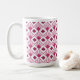 Cette tasse a un design art déco de diamants couleur betterave avec des lignes diagonales et des diamants de betteraves plus foncés sur un champ de blanc.