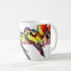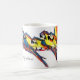 Une belle illustration peinte à la main d'une perche des perroquets d'ara imprimés sur une tasse blanche.