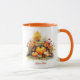 Tasse à café avec une aquarelle illustration d'un paysage d'automne en arrière - plan avec des fleurs citrouilles et d'automne au premier plan et le libellé Vibes d'automne ci-dessous image dans une couleur correspondant à l'illustration. Plusieurs couleurs de jante et de poignée à choisir parmi et d'autres styles et tailles disponibles. L'image peut avoir besoin d'être ajustée pour varier les tailles.