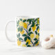 La motif est décorée dans un style animé et animé avec des citronniers luxuriants. Les branches sont ornées de citrons mûrs et jaune vif, dont certains sont tranchés à découvert pour révéler leur intérieur juteux. Les citrons sont entourés de feuilles verts qui contrastent avec l'arrière - plan de couleur crème et chaleureux. L'ensemble est audacieux et stylisé, avec des lignes épurées et un sens de la symétrie, créant une esthétique fraîche et joyeuse qui évoque une ambiance méditerranéenne.