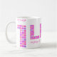 Mug de texte en mosaïque rose et blanche, produit par Sarah Trett.