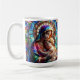 Vierge Marie avec Bébé Jésus dans un style de mosaïque de mosaïque vitrail. Belle tasse de café brillante, belle et colorée.