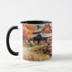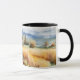 Merveilleuse tasse pour tous ceux qui aiment les vieux camions et la vie à la campagne, cette tasse a de hautes herbes en fin d'été dans un champ où un vieux pick-up rouge est garé avec une grange rouge et des collines dans l'arrière - plan, le tout dans un cadre d'automne.