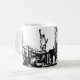 Cette tasse comporte le collage des icônes célèbres de New York City, du pont de Brooklyn, du carré de temps, de la statue de la liberté et du Wall Street.