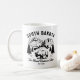 Une tasse à café de style vintage, noir et blanc, élégante et dotée d'un design typique du Dakota du Sud. L'oeuvre met en valeur le mont Rushmore, le point de repère le plus célèbre de l'état, à côté d'un majestueux bison américain (bison) et de pins classiques. Cette conception appelle fièrement le Dakota du Sud "l'Etat du Mont Rushmore", avec l'année d'établissement EST. 1889. Parfait pour tous ceux qui aiment voyager dans le Dakota du Sud, la fierté d'état, ou un souvenir rétro classique. Cette tasse en céramique durable fait un grand cadeau pour un natif du Dakota du Sud, un souvenir de voyage unique d'un séjour à Black Hills, ou un ajout idéal à toute maison ou bureau. Il séduit les amateurs d'affiches de voyage d'époque, de design rustique et de la grande occident américaine.