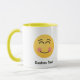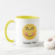 Un visage souriant, avec des yeux souriants et des joues roses. Texte personnalisé des deux côtés.