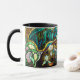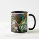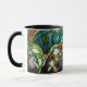 Il dispose d'un design de vitraux fleuris Art nouveau. Dans les couleurs de l'or, vert bleu et rose. Il présente des iris blancs et des fleurs violettes.