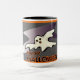 Ce design présente un fantôme volant la nuit avec Happy Halloween imprimé en noir et rouge. Un fantôme flottant, flottant dans l'air avec des yeux aussi noirs que du charbon. Une bordure orange accompagnée d'un noir opaque. Ces tasses sont disponibles dans des styles et des tailles variés. Customisez comme vous voulez.