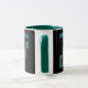 Votre nom Big Machine Brew Sci Fi Imaginaire Green et Black Coffee Mug. Carrés abstraits à texture bizarre avec des boules flottantes 3D et des points noirs. Au fond du gouffre noir de la Grande Machine. Art alien de science-fiction.