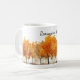 Beautiful watercolor autumn trees border this mug. For seasonal home decor, mugs are an easy change from summer fun to a cozy fall aesthetic. AI assisted graphic purchased with commercial license. Artwork: MokoDE