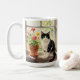 An illustration of a black and white cat sitting on a flower filled window sill illustration with a sweet poem on the back.
