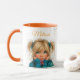 Watercolor Girl with flower Any Name Mug. Click on the “Customize it” button for further personalization of this template. You will be able to modify the name, including the style, colors, and sizes.
