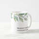 This botanical coffee mug features watercolor greenery and stylish typography. It says "Landscape Designer," but it is easily customizable for your name and profession. Original Watercolor © Michele Davies.