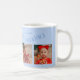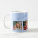 Perfect gift for a grandmother on mother's day or birthday featuring a text on a curved line that says "we love you grandma" with 4 photos on the bottom half. The color is icy blue.