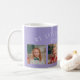 Perfect gift for a grandmother on mother's day or birthday featuring a text on a curved line that says "we love you grandma" with 4 photos on the bottom half. The color is lilac.
