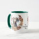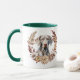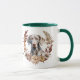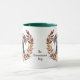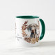 Une jolie couronne d'automne dans les tons brun cannelle, bronzé et crème entoure l'aquarelle d'un beau chien gris Weimaraner. L'image est imprimée deux fois sur la tasse, avec votre texte personnalisé entre eux.