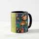 Mug de Mère Whimsical avec Citation Inspirationnelle - Personnalisable Art Familial Description : Célébrez la joie de la maternité avec cette tasse fantaisiste, avec une illustration colorée d'une mère aimante et de ses enfants dans un jardin vibrant. L'oeuvre capture une scène qui fait chaud au coeur avec une mère et ses deux enfants, entourée d'un tableau de fleurs vivant dans les tons vifs d'orange, rose, violet, jaune et vert. La mère a un sourire doux et porte une robe bleu foncé avec des motifs floraux et des pois colorés. Les enfants, aux expressions sereines, sont habillés d'une robe violette aux fleurs orange et d'une robe bleue aux motifs fantaisistes. L'arrière - plan est un bleu turquoise riche, rempli de motifs tourbillonnants et de fleurs fleuries qui ajoutent une touche de magie et de jeu. Le fond de la tasse comporte un message stimulant : "Mes enfants sont une source de joie et d'inspiration, et je suis reconnaissant pour les beaux moments que nous partageons !" Cette tasse peut être personnalisée avec votre nom ou un message spécial, ce qui en fait un cadeau réfléchi pour les mères ou toute personne qui chérit les moments familiaux. Idéal pour la maison, le bureau, ou comme un cadeau significatif pour les mères et les familles. Disponible en 11oz et 15oz. Apportez une touche de couleur et d'inspiration à votre journée avec cette tasse de maternité personnalisable, parfaite pour célébrer le lien spécial entre une mère et ses enfants.