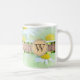 Monogramme avec bande décorative élégante sur une image estivale douce de Daisy blanc dans un pré vert. Une grande pièce décorative pour la maison. Une idée cadeau parfaite pour toute occasion.