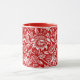Mug in a vintage William Morris, Art Nouveau, imprimé floral de tournesols stylisés, numériquement rehaussés et colorés, en rouge profond et blanc, accentués de corail clair