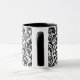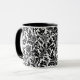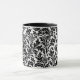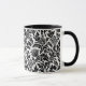 Tasse de café dans un vintage motif damassé William Morris de fleurs de chardon et de feuilles, en noir, sur un arrière - plan blanc, numériquement rehaussé et coloré