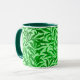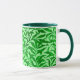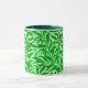 Mug dans un vintage William Morris motif de branches stylisées de saule, en vert émeraude moyen à foncé, sur un arrière - plan vert menthe pâle
