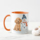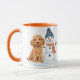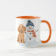 Cute illustration of different dog breeds building a snowman. Perfect for pet lovers or dog parents during the snowy season.