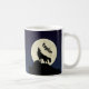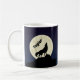 Montrez votre côté sauvage avec cette tasse de café personnalisée. Il présente une illustration en silhouette d'un loup en noir hurlant sur une lune jaune pâle dressée contre un ciel bleu nuit de minuit, ce qui en fait un endroit parfait pour quiconque aime les animaux. Cette tasse est prête à être personnalisée avec un nom ou un autre texte. Le graphique et le texte apparaissent de part et d'autre de cette tasse.