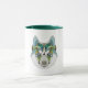 Illustration comme graphique du visage d'un loup / husky avec des embellissements verts & bleus