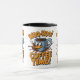 Fun cartoon illustration of a cheerful coffee cup with a duck face, surrounded by splashing coffee and bold orange text celebrating coffee time.