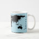 Wrap-around world map with black continents over a light blue ocean, printed on a mug. Includes the text ‘Planning my next adventure’ and an optional name, both in black. Text and name fields are fully customizable or removable.
