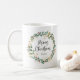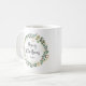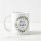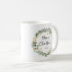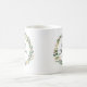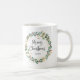 Cette tasse de vacances simple et élégante présente une superbe couronne d'aquarelle avec des feuilles verts et faux or et des baies sèches rouges, ainsi qu'une typographie de script moderne noir qui dit "Joyeux Noël" sur un arrière - plan blanc.