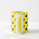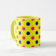Pink and Blue dots on a Yellow background, this playful design is perfect for modern home decor, fun accessories, and unique gift wrapping.