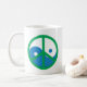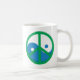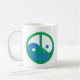 N'oubliez pas que vous pouvez modifier la couleur de l'arrière - plan sur les articles non vestimentaires, et ajouter du texte à n'importe quoi ! Redimensionnez aussi le graphique plus grand ou plus petit! Nous avons créé un design vraiment cool en utilisant le bon vieux signe de paix et l'ancien symbole d'harmonie et d'équilibre, le yin-yang. Nous avons ajouté des ombres de chute à la conception pour lui donner profondeur et dimension. Les couleurs bleues et vertes ont l'air vraiment extraordinaires ensemble et seraient parfaites pour n'importe quelle de vos "causes vertes" respectueuses de la terre.