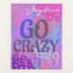 This spiral planner bursts with bold overlapping circles in pink, purple, blue, and peach. All hand drawn, the cover has a playful phrase “GO CRAZY” in multicolored letters, paired with a customizable name at the top and year at the bottom. It’s a vibrant, energetic design that inspires creativity and freedom of expression. Perfect for school, work, or personal journaling, this planner adds a splash of personality to everyday organization.