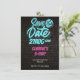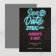 Cette carte vibrante de save the date d'anniversaire présente un thème néon accrocheur avec des couleurs bleu clair et rose vif sur un fond de mur de briques noires élégant. La carte utilise des polices grasses et ludiques pour créer une atmosphère amusante et animée, parfaite pour célébrer un anniversaire spécial. Le design moderne et le style énergique garantissent que cette fête restera inoubliable.
