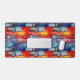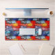 Ce tapis de bureau est muni d'un motif mural en brique.