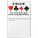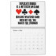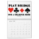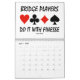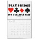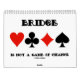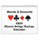 Les joueurs de pont avides apprécieront ce calendrier avec les quatre costumes de carte ainsi qu'un pont différent disant chaque mois en 20XX, plus un pont bonus indiquant la conception sur la couverture arrière. Les mots classiques de bridge qui sont souvent entendus à la table de bridge dans un club ou à un tournoi de bridge. Great Words & Unwords 20XX Classic Bridge Sayings calendrier cadeau pour n'importe quel joueur de pont sérieux / dupliquer, peu importe le rang!