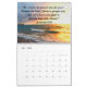 Partagez votre amour, votre paix, votre espoir et votre foi avec ce calendrier inspirant de citations de la Bible et des Écritures. Croyez au pouvoir de Dieu de transformer votre vie pour être heureuse, joyeuse et libre. Montrez votre foi et votre espoir dans l'amour et les bénédictions de Dieu avec cette motivation Bible cite le calendrier avec de belles photos du lever et du coucher du soleil. Ce calendrier encourageant sera un merveilleux rappel mois après mois de croire et de faire confiance à Dieu. Diffusez la bonne nouvelle pour vous détendre, parce que Dieu est en charge.