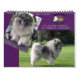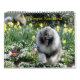 Photos prises de Keeshond avec des arrière - plans saisonniers pour correspondre à la période de l'année. Le calendrier présente également les litières de l'année précédente à Trumpet.