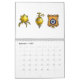 Un calendrier avec de diverses images, y compris des outils et des insignes