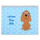 Un calendrier d'amusement pour 2014 chiens mignons comportants de bande dessinée. Les motifs d'arrière - plan sont aux nuances du bleu.