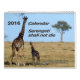 En passant commande, sous l'étape 1" personnaliser il", dactylographient l'année où vous voulez le calendrier pour, et sous l'étape 2" choisissez votre style, taille et couleur", éditez le "style de date et les options" et choisissez votre "DÉBUT ET DATES DE FIN" à moins que le calendrier soit pour janvier-décembre 2016 ! Le calendrier "Serengeti de DEUX PAGES ne mourra pas", disponible dans 3 tailles. - Photographie de faune par votre expert en matière de safari, Christine Eichin, au-dessus et au delà de l'Afrique, 1-877-GO-ON-SAFARI, www.YourSafariExpert.com. (lion, zèbre, éland avec des claves, éléphant, guépard et petit animal, autruche et poussins, topi et veau, éléphants de observation de lion, migration de gnou, oribi, hyènes et gnous et girafe et veau)