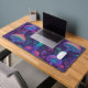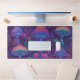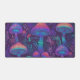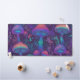 A vibrant and intricate design features glowing, mystical fungi rendered in an iridescent neon palette of violet, teal, magenta, and bright blue. The psychedelic mushrooms are surrounded by delicate, ethereal flowers and foliage, creating a truly whimsical and enchanting forest scene.