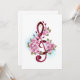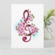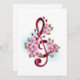 Pink treble clef with delicate, detailed pink Japanese cherry blossoms against white background painted over with light blue paint Blooming pink sakura.