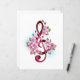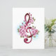 Pink treble clef with delicate, detailed pink Japanese cherry blossoms against white background painted over with light blue paint Blooming pink sakura.