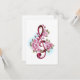 Pink treble clef with delicate, detailed pink Japanese cherry blossoms against white background painted over with light blue paint Blooming pink sakura.