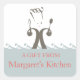 Mignonne petite cuisinière faite de symboles musicaux sur ce ‘de ma cuisine’, ‘de la cuisine de’ étiquettes cadeaux autocollants ou de nourriture ou étiquettes de cuisson. Le chef porte un grand casquette de chef et tient une cuillère et un fouet.